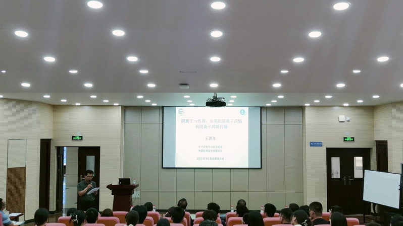 应学院邀请,中科院化学所王德先研究员于2023年7月3日上午在知行校区弘文楼159报告厅为365上市公司官网师生作报告,报告题目为《阴离子-p作用:从有机阴离子识别到阴离子跨膜传输》,学院师生百余人参加了报告会。