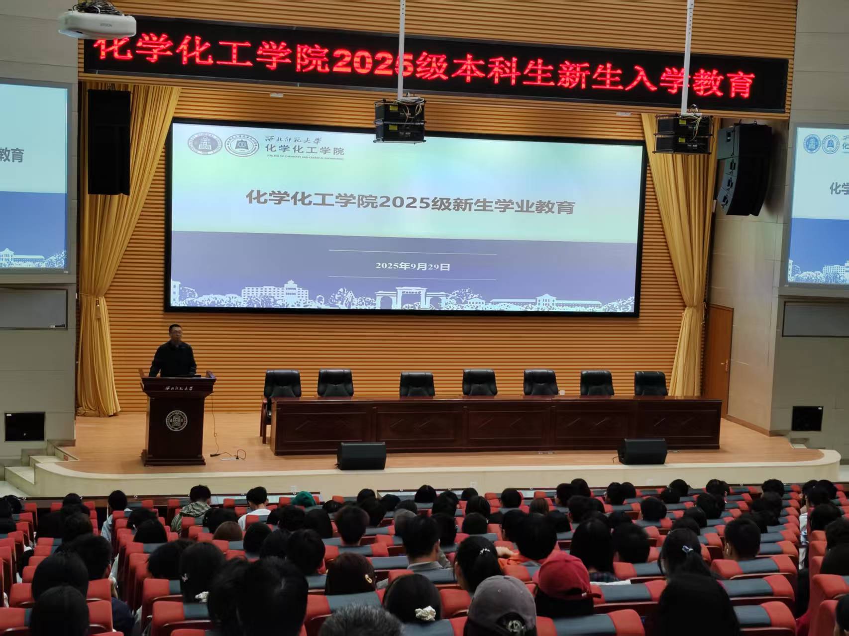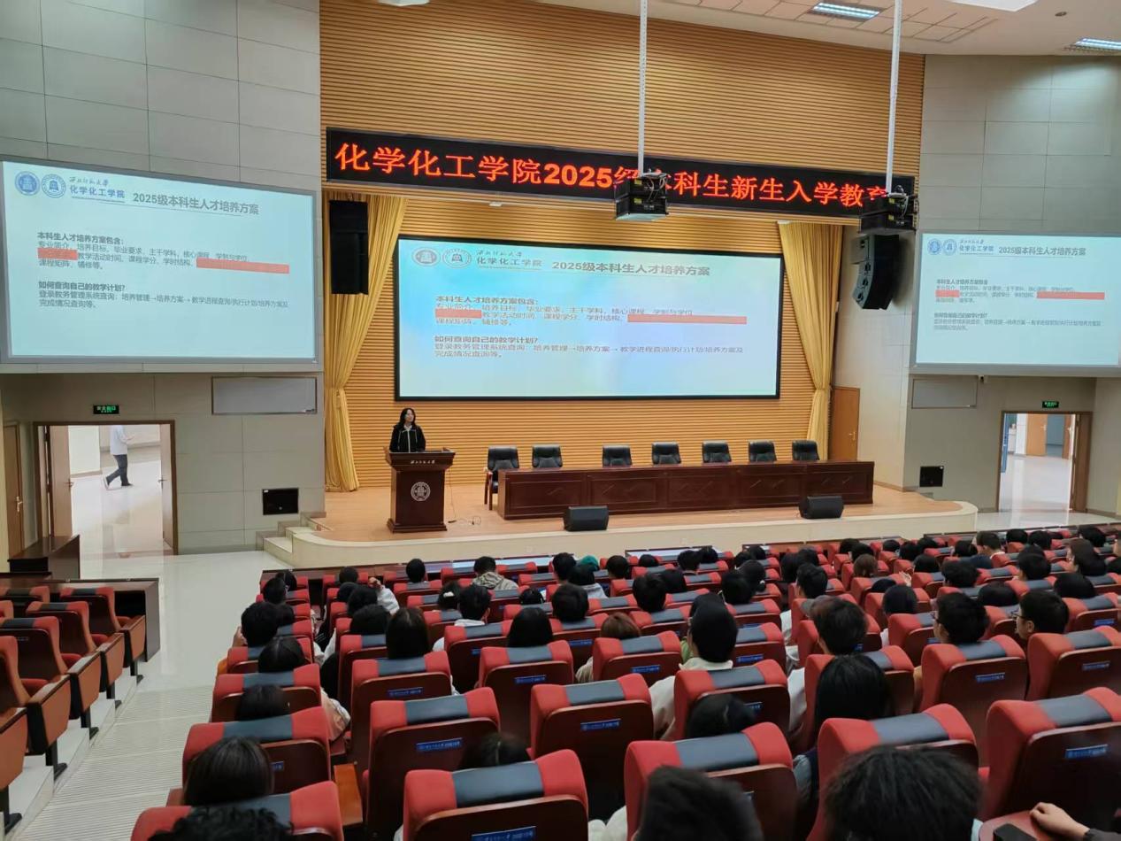 2025年9月29日,化学化工学院在毅然报告厅顺利举办了2025级新生学业教育。本次会议由学院辅导员杨帆主持,副院长黄静伟、教务秘书及全体2025级本科新生共同参加。