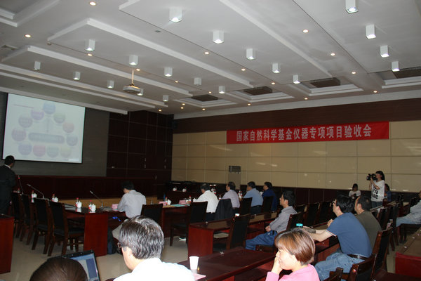 2013年5月25日下午,由中国科学院院士、中国科学院生态环境研究中心主任、环境化学与生态毒理学国家重点实验室主任江桂斌教授,中科院院士、兰州大学涂永强教授,国家自然科学基金委员会分析化学部主任庄乾坤教授,北京大学邵元华教授,中科院北京化学所副所长毛兰群研究员,清华大学张新荣教授组成的专家组对甘肃省生物电化学与环境分析重点实验室主任、卢小泉教授主持的国家自然科学基金科学仪器专项“紫外/可见光谱电化学扫描显微镜的研制及应用”进行了结题验收。验收会由国家自然科学基金委员会分析化学部主任庄乾坤教授主持,中科院江桂斌院士担任验收专家组组长。甘肃省生物电化学与环境分析重点实验室、化学化工学院部分教师及研究生约30余人参加了本次验收会。
