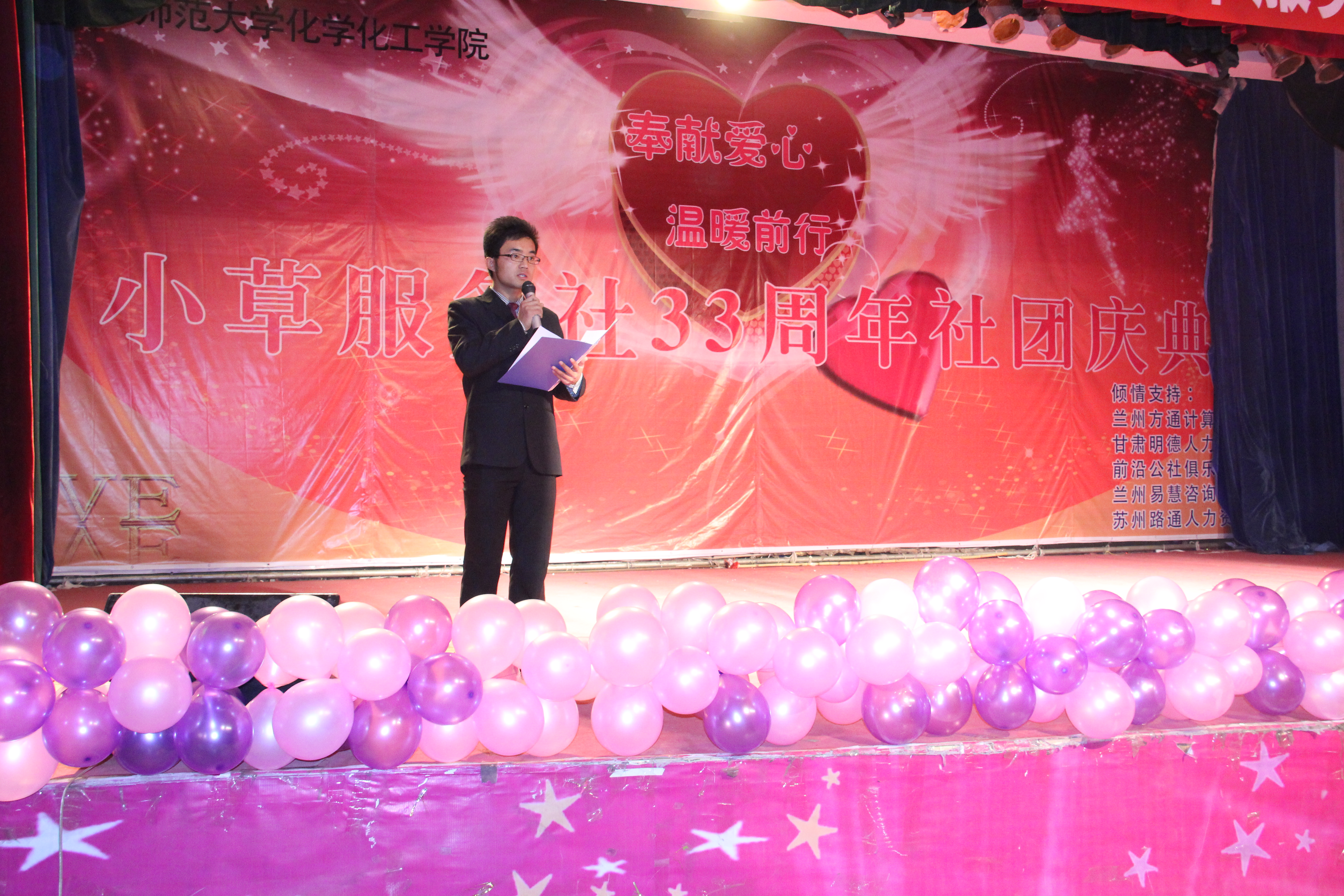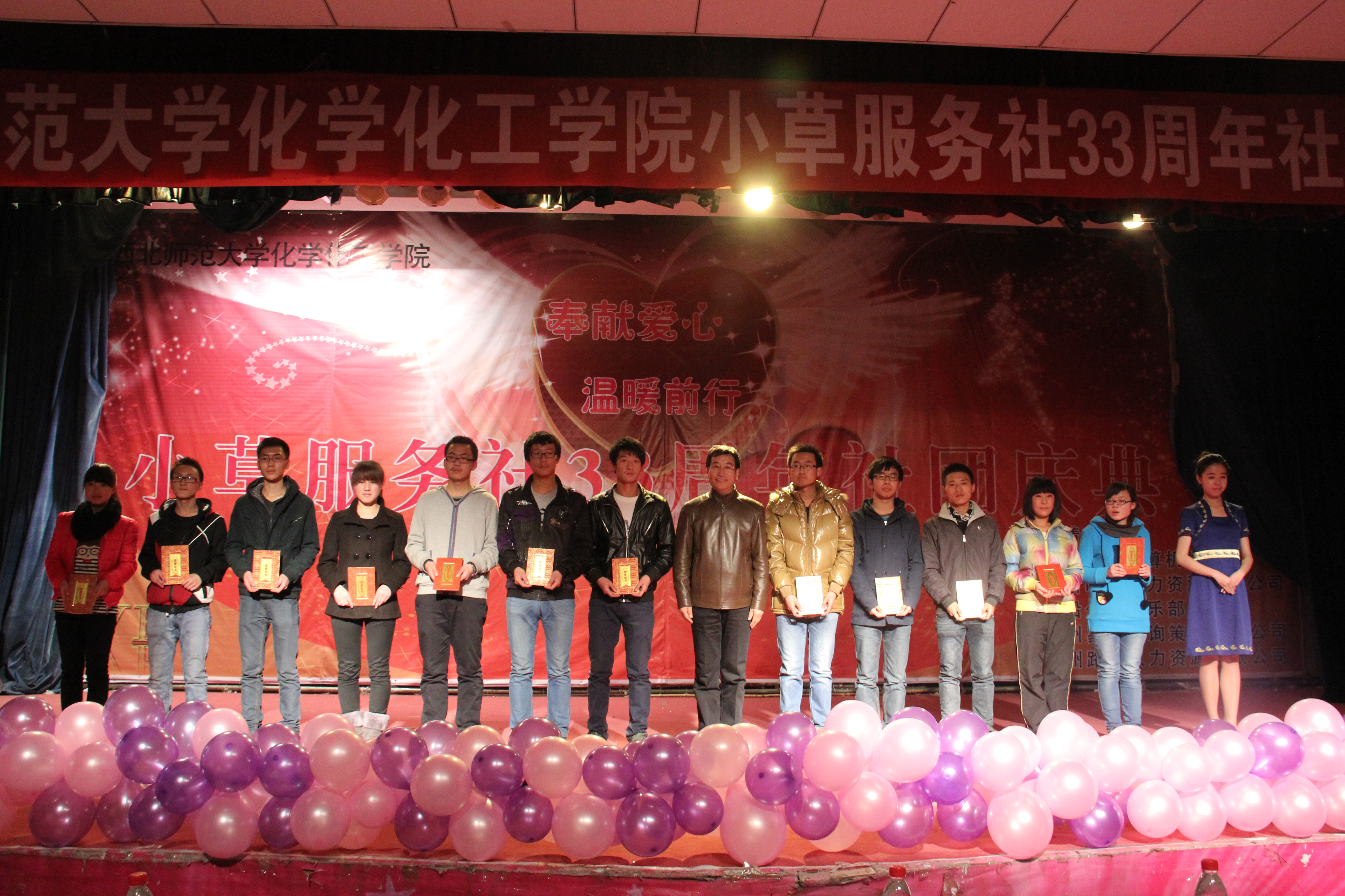三十三年公益路,三十三载薪火传。12月8日,西北师大化学化工学院“小草服务社”成立33周年社团庆典活动在大学生活动中心举行。学院党委书记赵卫东、校团委副书记周海杰、安宁区残疾人联合会理事长安颖龙、安宁区团委副书记陶宇翔及来自社会不同团体的公益人士出席了此次庆典活动。
