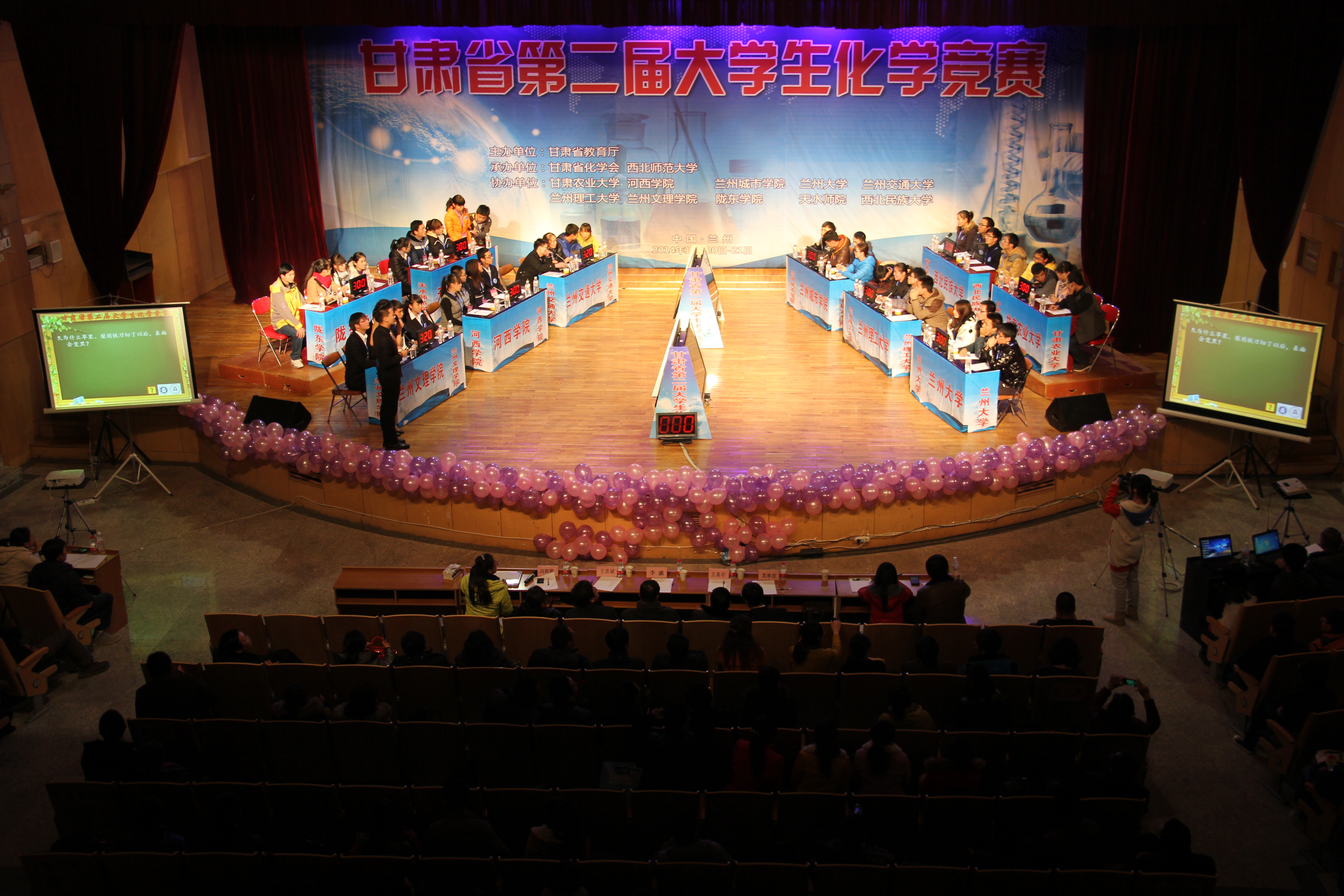 2014年12月20—21日,由甘肃省教育厅主办、甘肃省化学会和365上市公司官网承办的甘肃省第二届大学生化学竞赛在我校举办。甘肃农业大学、河西学院、兰州城市学院、兰州大学、兰州交通大学、兰州理工大学、兰州文理学院、陇东学院、西北民族大学、天水师范学院等10所高校共计110余人参加了竞赛。