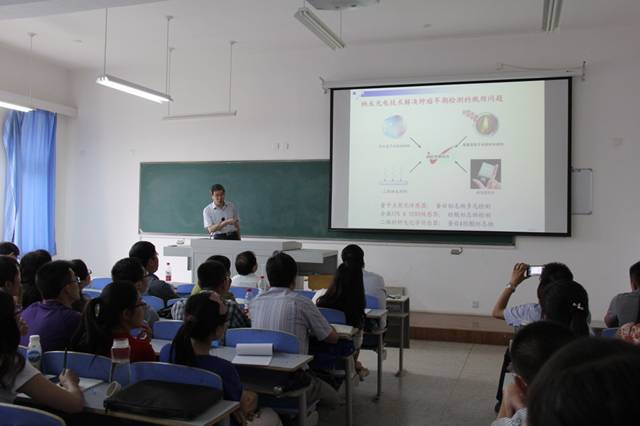 6月29日上午10:00,应学校邀请,南京邮电大学汪联辉教授在新校区203多媒体教室作了题为“纳米光电材料及其生物检测应用”的学术报告,化学化工学院及物电学院教师和研究生约100余人参加了报告会。