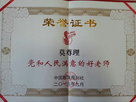 9月8日,2015年“党和人民满意的好老师”推选展示会在北京召开,来自全国各地的30名教师获此殊荣,我校莫尊理教授名列其中。他们将于9月9日上午参加教育部组织的庆祝教师节优秀教师座谈会。