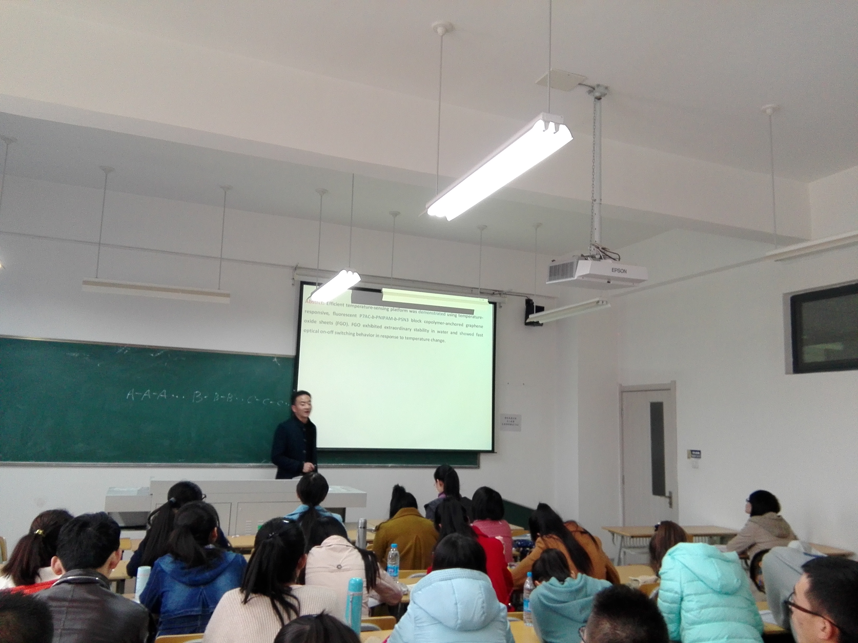 11月11日(星期二)3-4节课,在新校区212教室,有机组马恒昌老师进行了教学技能大赛公开课《化学化工专业英语》的讲授,宋鹏飞、王庆涛等评委、有机组老师以及其他青年教师参加了听课和评课。