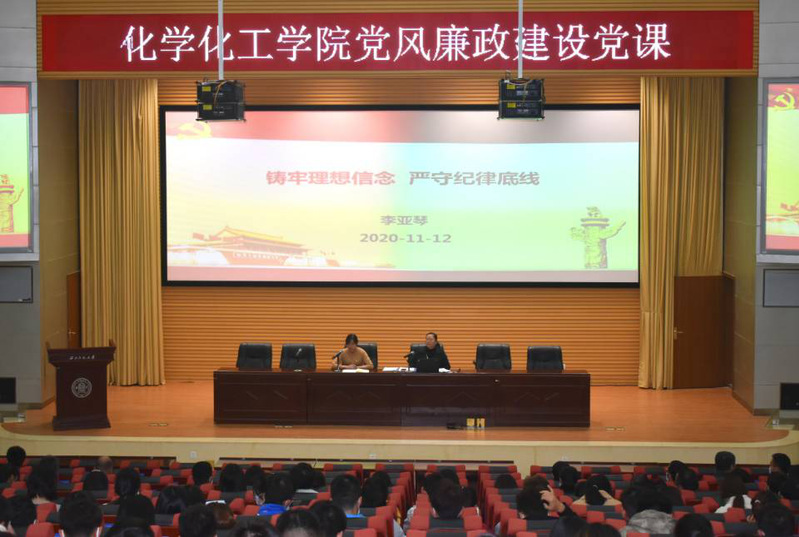 根据学校纪委“关于开展廉政教育宣传月活动”的活动要求,学院深入贯彻落实学校党风廉政建设工作会议精神,落实立德树人根本任务,开展系列活动推进党风廉政建设工作,进一步强化党员理想信念教育,提高党员党性觉悟,营造党员干部清正廉洁、风清气正的良好环境。11月12日下午,学院特别邀请学校纪检监察一室主任李亚琴同志以“铸牢理想信念 严守纪律底线”为主题,为全体党员讲授廉政教育专题党课。