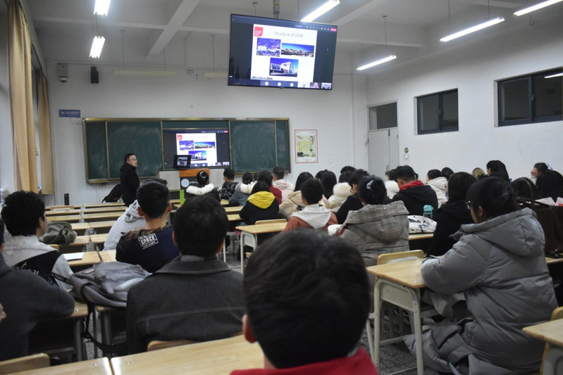交流会上,南威尔士大学教授围绕学校办学环境、区位优势、教学现状、教师队伍、课程安排、以及中外合作办学对于学生未来的发展机会与优势等问题作了详细介绍。此外,教授们还鼓励同学们为未来的发展提前做好计划,积极选择出国学习深造,并针对同学们提出的问题给予耐心的引导和细致的解答。同学们与南威尔士大学老师积极互动,全程英文交流,现场气氛活跃。通过本次交流互鉴,师生们增加了相互之间的感情,同学们也提升了学习信心。
