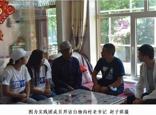 实践团拜访了白杨沟村老书记,与老书记一同交流白杨沟村从脱贫攻坚取得胜利到成为青海省乡村振兴战略示范村的发展历程。现如今,美丽乡村变成了现实,白杨沟村村民的生产生活发生了翻天覆地的变化。