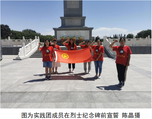 7月18日上午,社会实践团在中国工农红军西路军纪念碑前重温入团誓词。此次活动旨在唤起每一位团员“团”意识,时刻牢记自己是一名光荣的共青团员,自觉加强组织性、纪律性,团结性。活动结束后,实践团成员都说,重温入团誓词,再次加深了自己对共青团的信仰,在学习和生活中,做到刻苦努力,勤于奉献;在时代发展中,展现风采,展现力量。随后实践团来到纪念碑后的烈士陵园,面对烈士公墓鞠躬默哀,缅怀革命先烈。为突出团队服务社会的实践宗旨,实践团成员在纪念馆进行志愿活动、义务宣传,并对烈士纪念亭进行打扫。