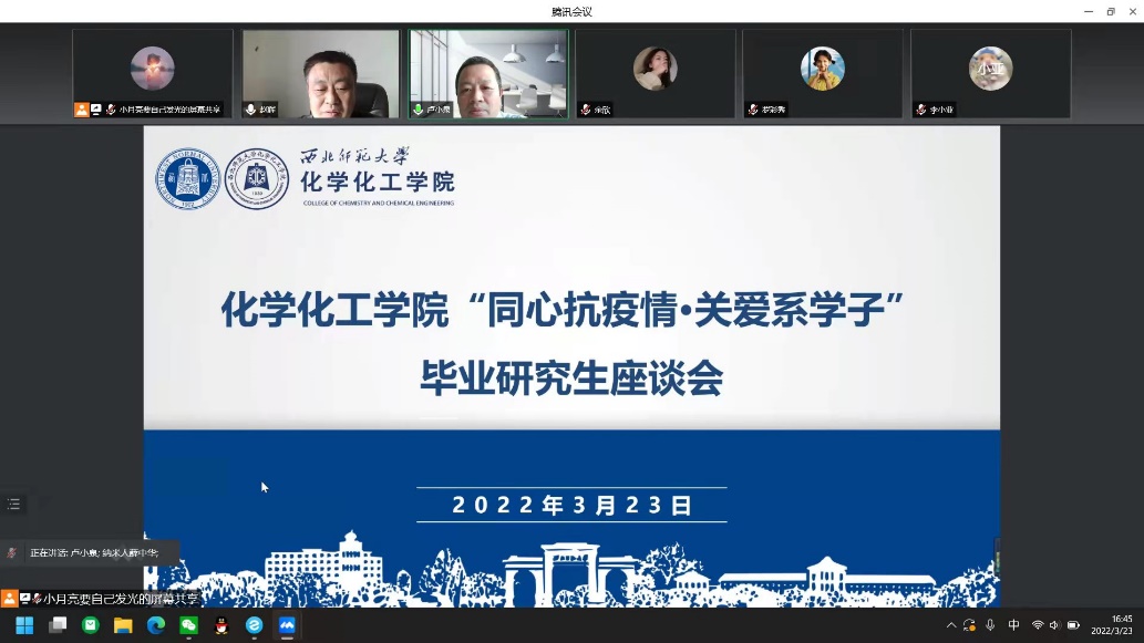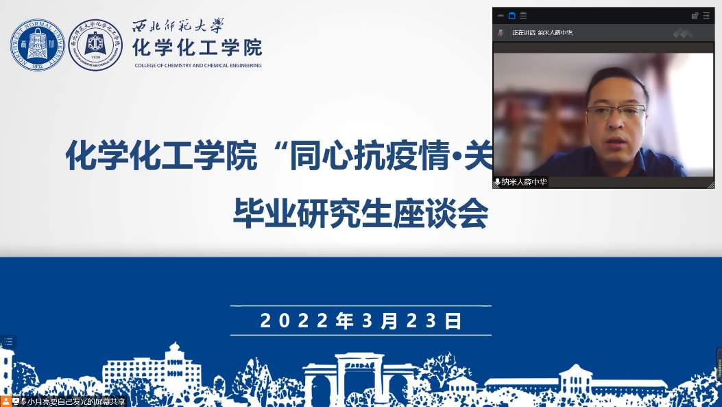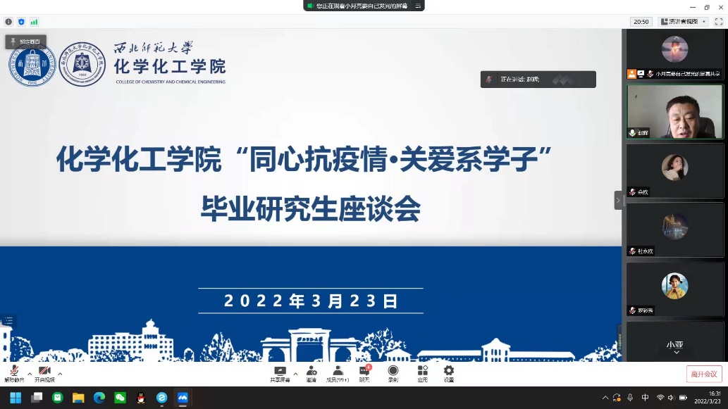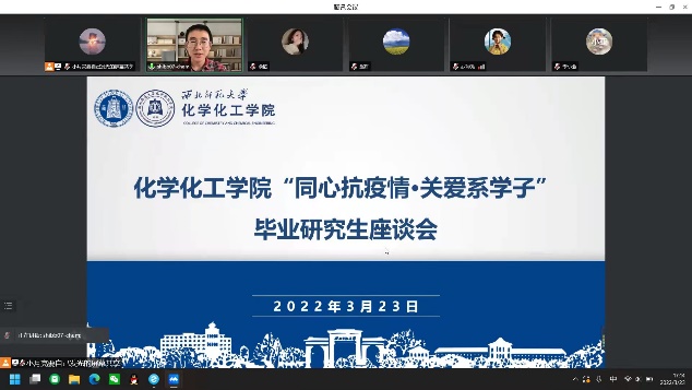 最后,赵辉书记就本次座谈会做总结,他表达了在这一特殊时期,学院对全体毕业生的深切关怀,并对教育厅及学校疫情防控的有关规定措施想各位毕业生做了解答,希望各位毕业生面对各项挑战,积极、沉着应对,圆满完成研究生阶段的学习、就业等相关工作。