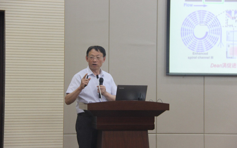 王进义教授详细介绍了微流控芯片这一前沿尖端技术,从功能单元设计、微流控芯片制备、单元功能验证、分析方法建立与微平台构建等方面,说明了多功能集成微流控芯片技术在细胞分离等生命科学方面的应用。王教授还结合自己的工作和学习,分享了做科研的心得体会,鼓励同学们要热爱专业,保持自信乐观的良好心态。