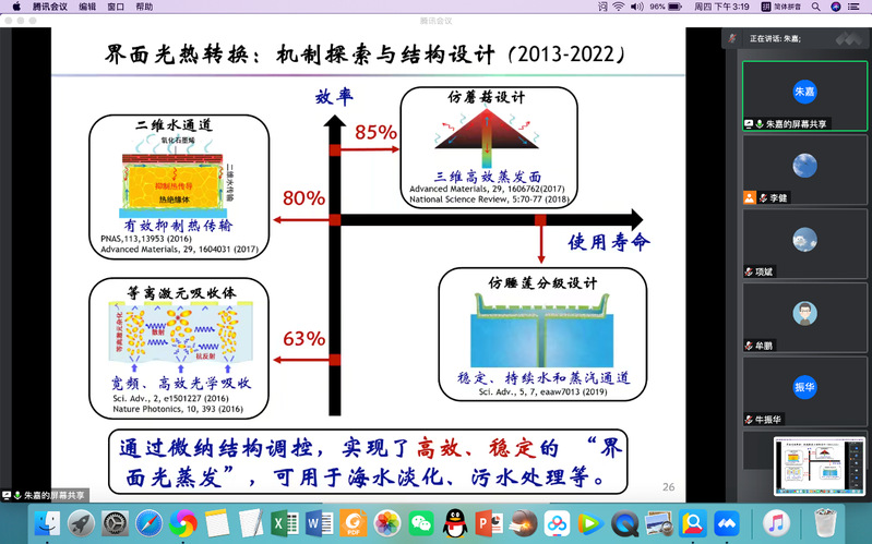 为庆祝365上市公司官网120周年校庆暨365上市公司官网研究生学术月活动,应化学化工学院、生态功能高分子材料教育部重点实验室和甘肃省高分子材料重点实验室邀请,南京大学朱嘉教授于12月8日下午15:00通过线上会议为365上市公司官网师生作学术报告,报告题目为《基于微纳结构的光热调控》,报告由化学化工学院李健教授主持,学院师生110余人线上参加了报告会。