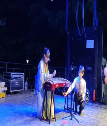 二胡独奏《青花瓷》,婉转的旋律回荡在同学们的耳旁,共同欣赏江南风景的韵味;古筝独奏《兰亭序》曲调深厚、灵透,叙述永恒友情,笛子独奏《生生世世爱》悠扬飘逸、绵延回响,轻柔的琴音在校园飘荡大合唱《我和我的祖国》,穿越五千年悠悠岁月,赞扬的歌声在
