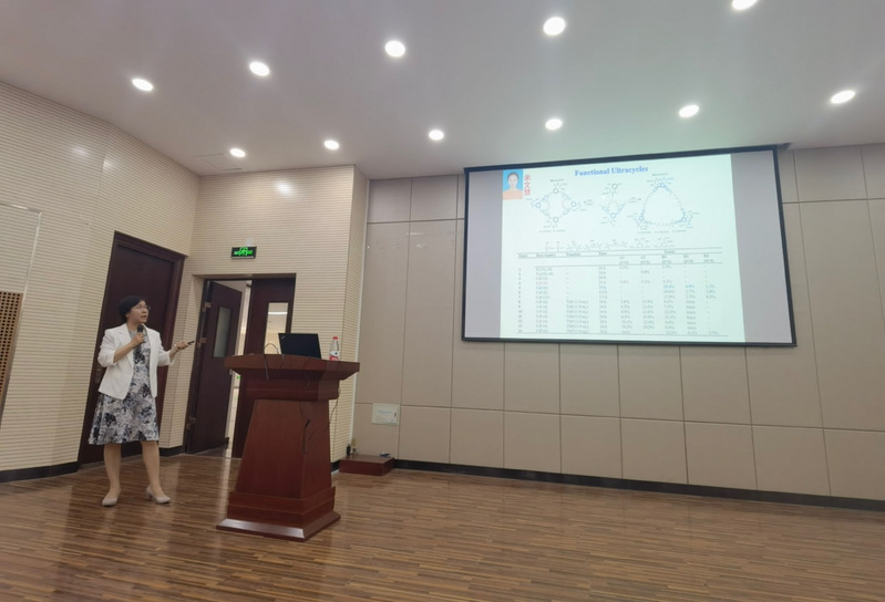 如何利用阴离子-p作用的协同性和加和性等实现对有机阴离子的选择性结合、能否基于阴离子-p作用实现阴离子的选择性跨膜传输,是目前需要解决的科学问题。报告中,王德先研究员介绍了基于阴离子-p作用的协同性原理设计并合成的超大环分子(ultracycles),以及它们对具有大尺寸有机阴离子的识别性能,揭示了多重阴离子-p作用的协同是实现阴离子选择性的关键;同时也介绍了利用缺电性基元构筑仿天然氯离子通道(ClC)选择性孔道的“分子沙漏”,以及其离子传输活性、阴离子选择性和pH响应性。