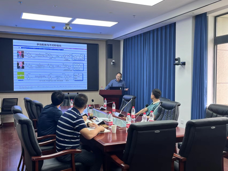 报告中,张俊良教授展示了其课题组近年来基于叔丁基亚磺酰胺骨架手性膦配体设计、开发、应用方面的研究进展以及所取得的成果。其课题组基于新开发的手性配体和催化剂,发展了一系列基于金,铜,镍,钯,钴等过渡金属和小分子催化的不对称反应,并将其应用于药物的合成和开发中。报告结束后,张俊良教授与在场的师生们进行了学术讨论,并就学院在有机化学学科的发展、学科建设等方面进行了深入的交流,并提出了宝贵的意见和建议。
