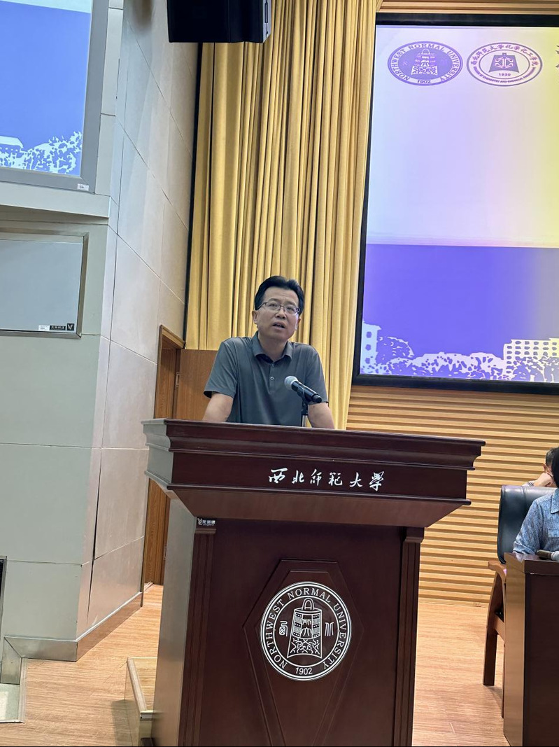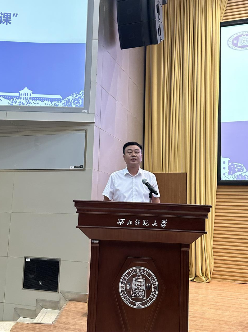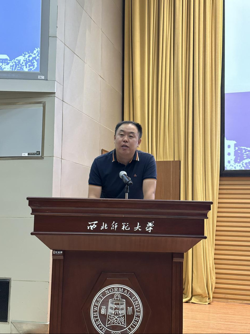 学院院长宋鹏飞教授向2023级全体新生表示热烈欢迎,为同学们深情地讲述了师大西迁的光辉历史以及学院传承与发展的历史脉络,向同学们详细地介绍了学院人才培养、师资队伍建设、学科建设、教学、科研、社会服务中取得的优异成绩,并向同学们提出三点期望,第一,从今天做起,树立理想目标;第二,做独一无二的自己,脸上有笑容,心中有热爱;第三,爱生活、擅求知、忧天下、有作为。最后,宋鹏飞院长预祝各位同学在今后的发展道路上取得优异成绩。