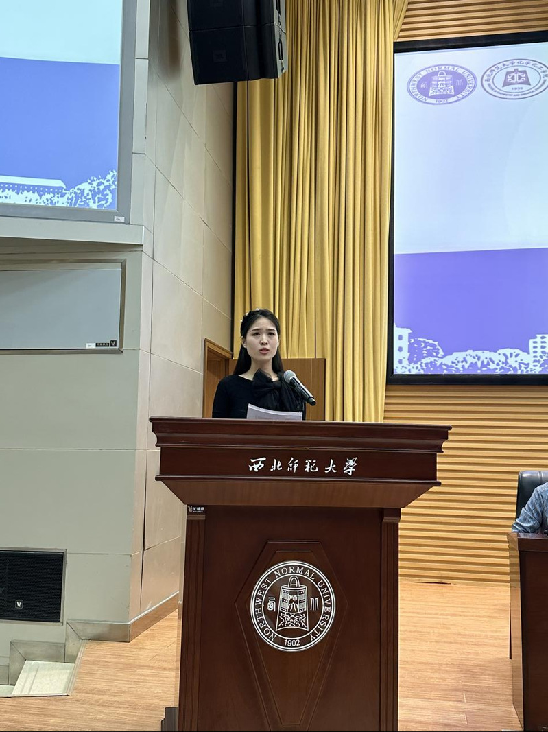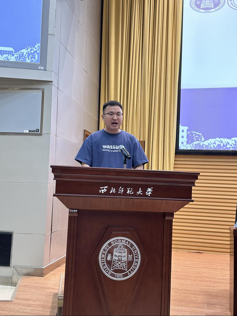 2023级分析化学专业博士研究生张震作为研究生代表,向同学们分享了自己的感悟,号召同学们在历史文化底蕴深厚的师大,要知史明智,行以致远,在求学路上要脚踏实地,勇于追梦。最后,张震同学在教师节即将来临之际向各位老师表达了真挚的祝福。