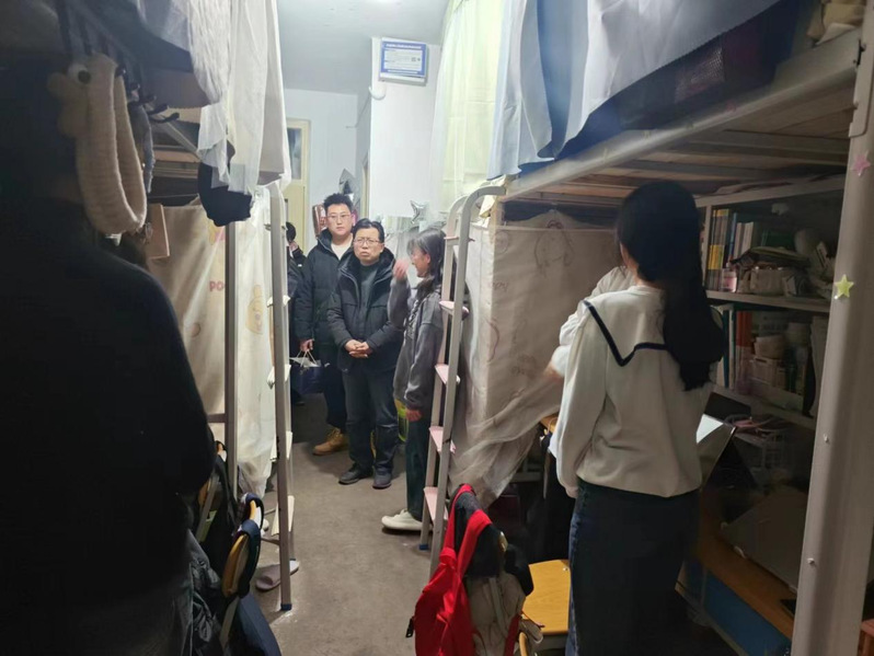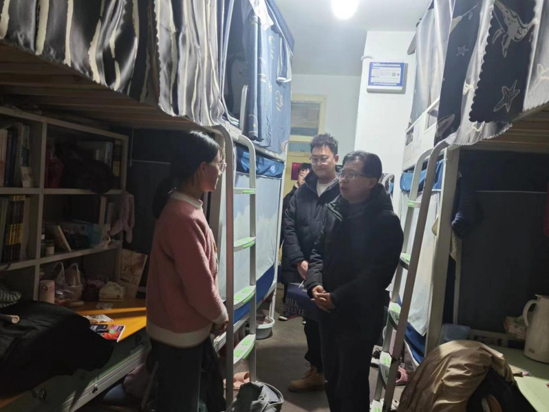 宋鹏飞院长深入兰天公寓一年级、四年级本科学生宿舍看望学生。在走访过程中,宋院长一一询问学生家庭受灾情况。他尤为关注积石山籍学生家庭受灾情况,详细询问学生当前困难,耐心疏导缓解学生心理压力。在与学生的交谈中,宋院长告诉同学们在关注家庭受灾状况的同时要安心学习,有困难要及时与学院联系,学院将持续为同学们提供帮助。
