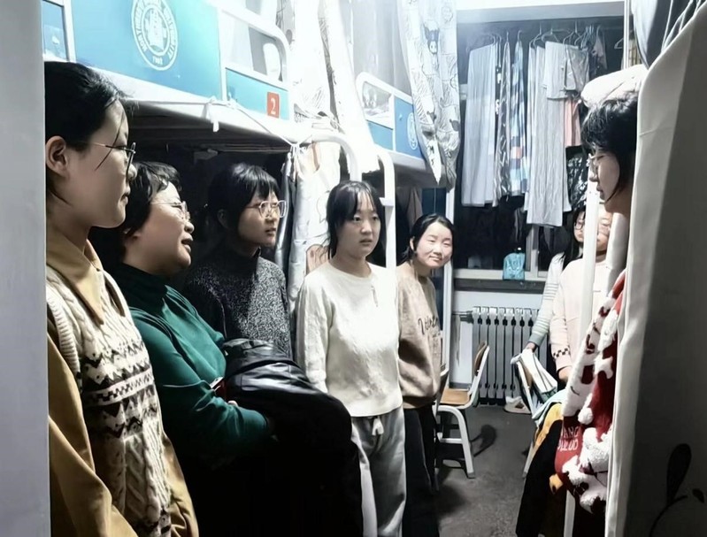 郭昊副院长、苏瀛鹏副院长到知行校区研究生公寓看望学院研究生,要求同学们开展实验时要将实验室安全谨记心头,毕业生要把握好时间节点完成学位论文的撰写,在学习和科研的同时要保持良好的身体健康状况。朱淑芹老师一行前往党校学生公寓看望2020级本科生,耐心关切同学们的生活,询问同学们的就业情况、考研情况,鼓励同学们主动积极参与各类招聘,把握好就业黄金期。陈芳副书记、史兵兵副院长来到兰天公寓看望了一年级本科生,要求同学们及时调整状态,在校园生活中高度重视宿舍消防安全、出行安全,提高防骗反诈意识,积极调试情绪保持健康的心理状态。黄静伟副院长到知行学生公寓看望三年级本科生,亲切询问师范生教育实习地点选择情况,要求同学们在锻炼讲课能力的同时注重提升班级管理等综合能力。