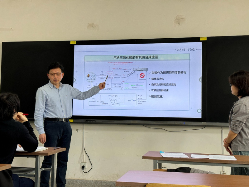 逆硫化反应已经成为有机合成及材料合成领域的研究热点之一。多年来吴晓锋教授致力于逆硫化反应的应用研究。本次报告吴晓锋教授围绕催化反硫化反应,结合无机催化剂、有机催化剂和光催化的研究进展,介绍了反硫化反应方法的优化、合成聚合物的表征以及富硫聚合物的应用。同时,吴晓锋教授指出通过光诱导反硫化聚合使反应温度降低至室温,不仅拓宽了底物和产品范围,而且室温条件使挥发性和气态的烯烃、炔烃首次得以在反硫化反应中使用,推进和激发了反硫化的基础化学研究和从废原料中制备新材料的工业应用潜力。与会师生与吴晓锋教授就富硫聚合物的应用、绿色化学原子经济性等问题进行了讨论交流。交流会上化学化工学院博士生田雅玲作了题为《无机磷到有机磷的转化:双(三氯甲硅烷基)膦的制备及其合成应用》的分享,介绍了有机磷化合物研究现状、课题设计的创新点以及工作计划。吴晓锋教授将有机磷化学的研究前言与博士生田雅玲的工作内容相结合,提出了宝贵的建议,并对与会师生提出的问题进行了详细的解答。