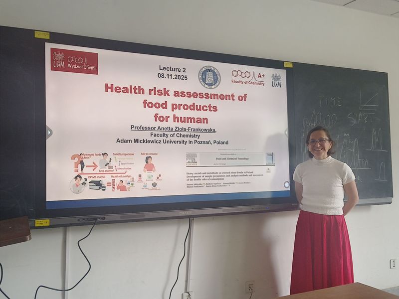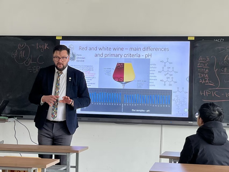 两位教授围绕分析化学关键技术与实际应用展开系统分享,内容兼具理论深度与实践指导价值,涵盖光谱学、色谱学、联用技术等领域。Marcin Frankowski教授(波兹南大学分析与环境化学系主任,仪器分析与环境分析领域杰出学者)以光谱学技术为核心,先后作了“Introduction to Analytical Chemistry” “Fundamentals of Spectrometry part I (ICP-OES)”“Fundamentals of Spectrometry part II (ICP-MS)”“Application of ICP-OES and ICP-MS in routine analysis”“Hyphenated techniques in environmental and food analysis, method development and application”5场讲座。他系统阐述了ICP-OES/ICP-MS的原理框架,结合环境污染物检测、食品成分分析的实际案例,解析技术应用逻辑,让师生对高端仪器分析技术有了更直观的认知。